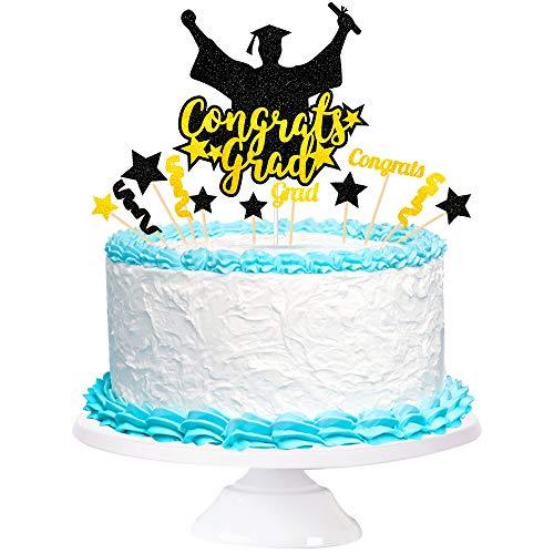 - Material: Cake topper made of cardboard. Graduate celebration elements and golden glittering \"Congratulations on Graduation\" banner. So please place an order and plan your party as soon as possible!